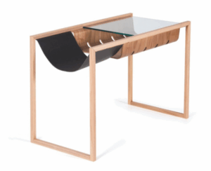 Mesa lateral Friz com revisteiro couro marrom em promoção do outlet