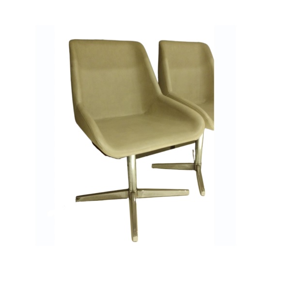 Cadeiras giratórias com base em metal e estofado em couro.