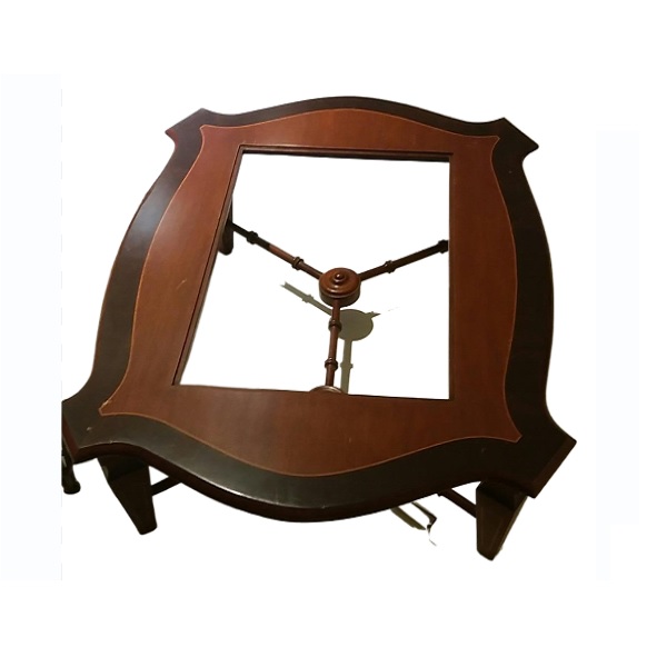 Acabamento em madeira torneada em dois tons.