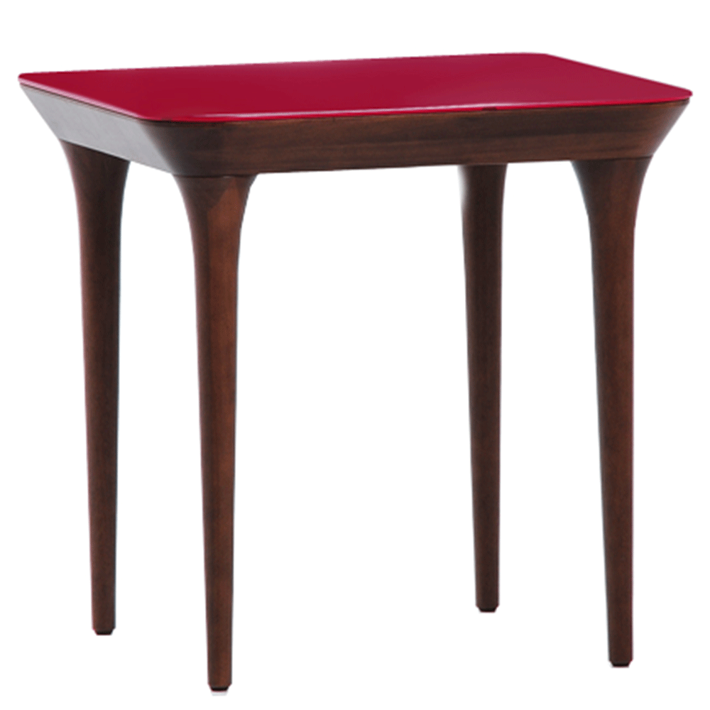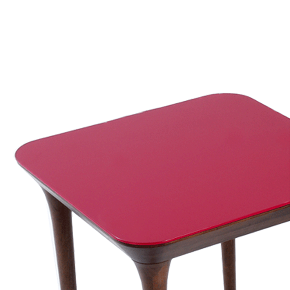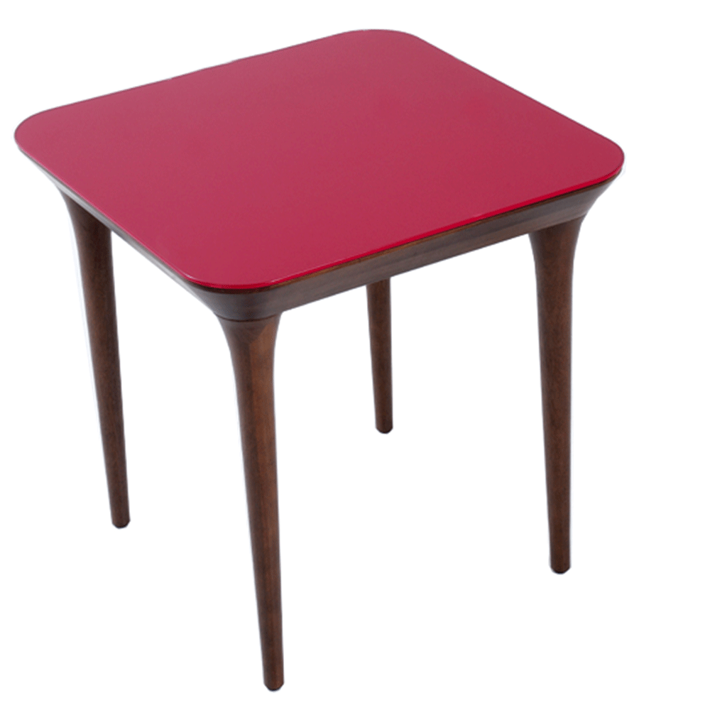 Tampo de vidro pintado na cor vermelha, com os cantos arredondados.
